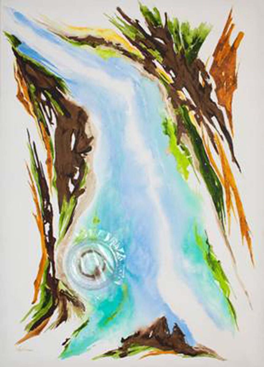 Essa mesma energia pode ser percebida nas obras recentes de Lys, como Celestial (2022) e Divina Fonte (2023), que retomam símbolos da Fonte de Jerusalém e os ressignificam em novas camadas materiais e espirituais. Se a fonte marcou um gesto inicial, as pinturas mais recentes revelam a continuidade de sua pesquisa poética três décadas depois.