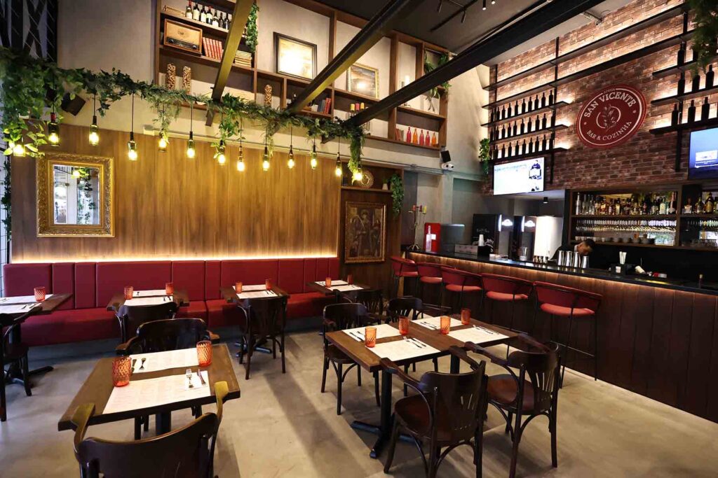 A Adega San Vicente tem capacidade para mais de 70 pessoas, distribuídas em 2 ambientes. Na parte interna, a Adega conta com mesas baixas, sofá e banquetas no bar. Já na área externa, um ambiente coberto se junta a um deck onde os clientes podem aproveitar um ambiente de frente para a charmosa Alameda Dom Pedro II.