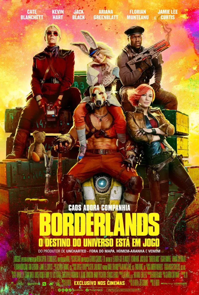 O filme “Borderlands: O Destino do Universo Está em Jogo” (Borderlands), baseado na franquia de vídeo game Borderlands, chegará aos cinemas brasileiros em 8 de agosto. A produção acompanha Lilith (Cate Blanchett), uma infame caçadora de recompensas, que recebe uma missão para encontrar a filha desaparecida de um poderoso homem.