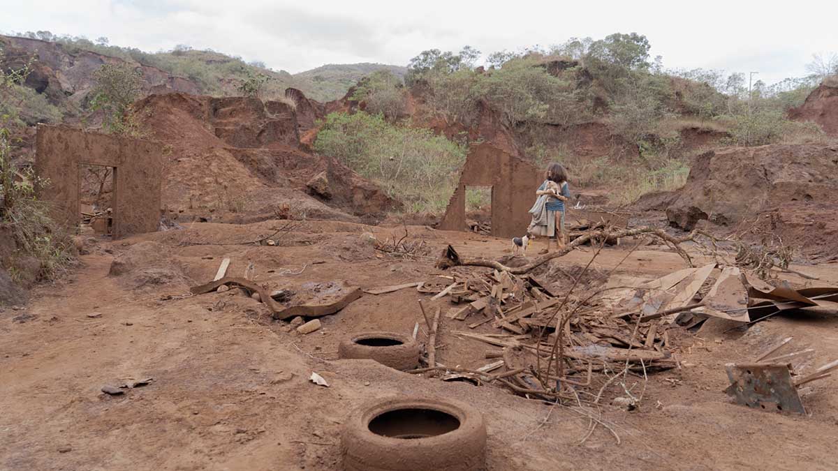 Sozinha em um cenário ocre e destruído pela inconsequente ação das mineradoras na região, ela se torna vítima do êxodo de sua própria história, buscando caminhos e direções para seguir em frente.