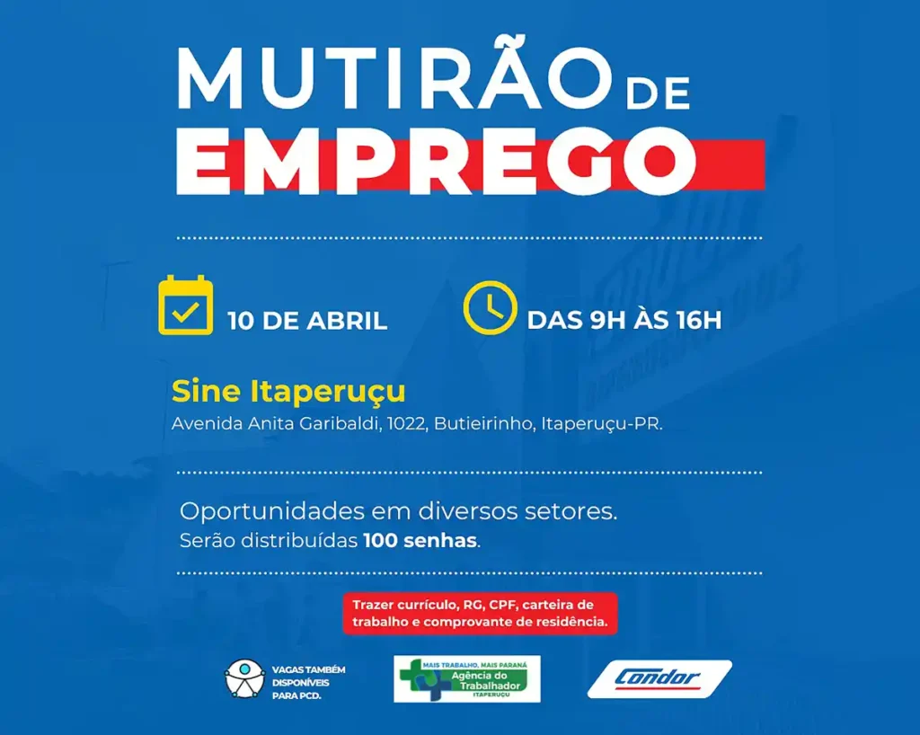 Condor promove mutirão de emprego em Itaperuçu | CuritibaFun