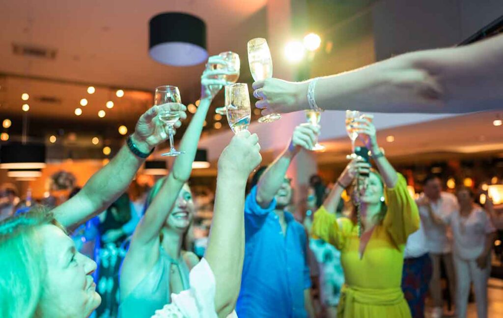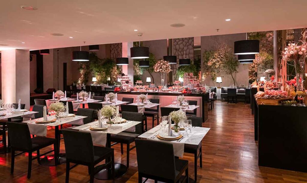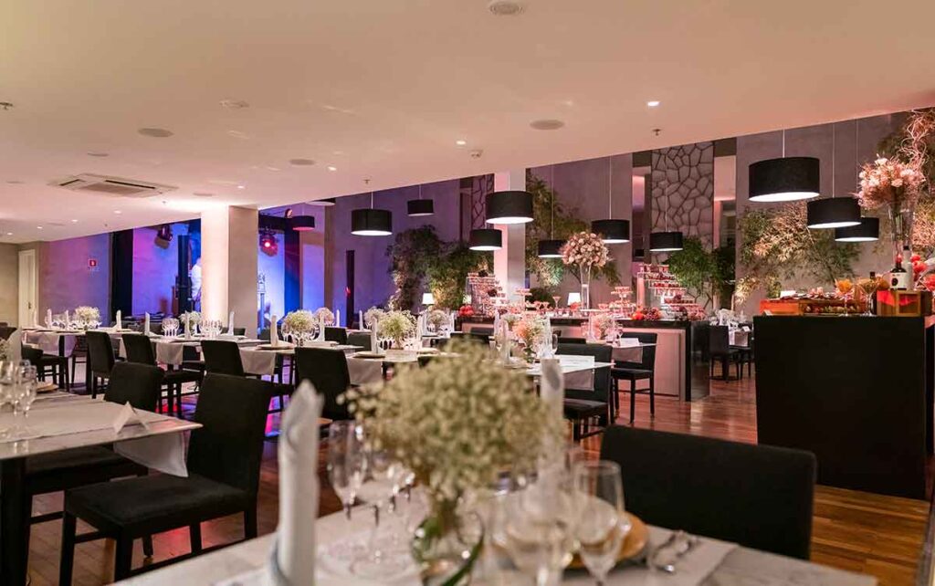 Hotel de Curitiba oferece celebração elegante em ambientes variados, incluindo coquetel ao ar livre no terraço, festa indoor com open bar, música ao vivo e gastronomia de alta qualidade