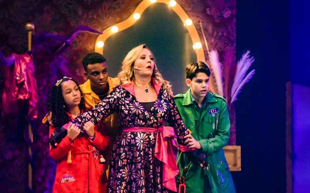 “D.P.A. A Peça 2 – Um Mistério em Magowood” está recheada de novidades. Os detetives Max (Samuel Minervino) e Zeca (Stéfano Agostini) ganham a companhia da nova detetive da capa vermelha, Mel, interpretada por Emilly Puppim. A investigadora estreante chega à série na 18ª temporada e já está convocada para sua primeira missão no teatro.