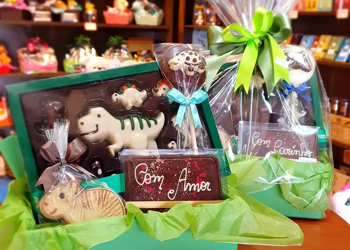 A tradicional loja de chocolates artesanais de Curitiba preparou kits coloridos e repletos de delícias a R$ 65 e cestas individuais a partir de R$ 96 que trazem – além das guloseimas em formato de brinquedos, patinhas, capivaras, dinossauros e mensagens carinhosas – bichinhos fofos de pelúcia. Essas opções de presentes são em edição limitada e valem enquanto durar os estoques.