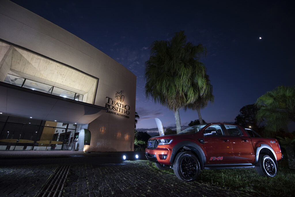 Já na entrada do evento estavam expostos alguns carros do portfólio atual da Ford como Mustang e Ranger. Além disso, foi criado um espaço iluminado com backdrop e balanço de neon no hall do Teatro para os convidados tirarem fotos. “Investir em cultura faz parte de nossa história e Curitiba tem sido palco de grandes apresentações nos últimos anos. É muito importante conectar nossa marca com a cultura local e apoiar o setor”, destaca o CEO da Ford Slaviero, Luís Antônio Sebben.