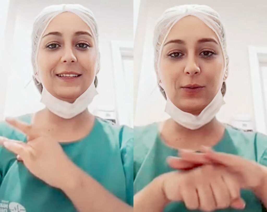 A enfermeira era Débora Gonçalves Moçato, que aprendeu a Língua Brasileira de Sinais (Libras) apenas para se comunicar com Fabrício. “Logo que ele chegou ao hospital, percebi a necessidade de encontrarmos uma forma de incluí-lo nos cuidados e nas informações sobre o estado de saúde de sua mãe. Não pensei muito e fiz uma chamada de vídeo com uma amiga que me ensinou o suficiente para nossa primeira conversa“, conta. “A reação de Fabrício foi impagável, com um sorriso de orelha a orelha, e uma amizade que se firmou ao longo dos dias. No final, ficou a certeza de que um pequeno gesto pode fazer toda a diferença na vida de alguém“, complementa a enfermeira do Hospital São Marcelino Champagnat.
