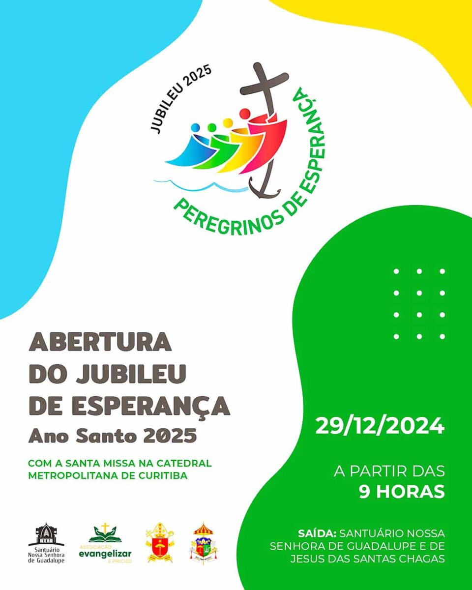 No próximo domingo (29), a Arquidiocese de Curitiba, em unidade com todas as Dioceses e apoio da Associação Evangelizar É Preciso, promove a programação que marca a abertura do Ano Jubilar de 2025. A abertura do Jubileu Peregrinos da Esperança na capital paranaense terá procissão e Santa Missa.