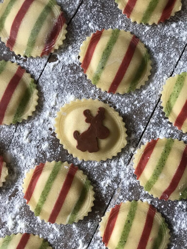 Ravióli em formato de rena.