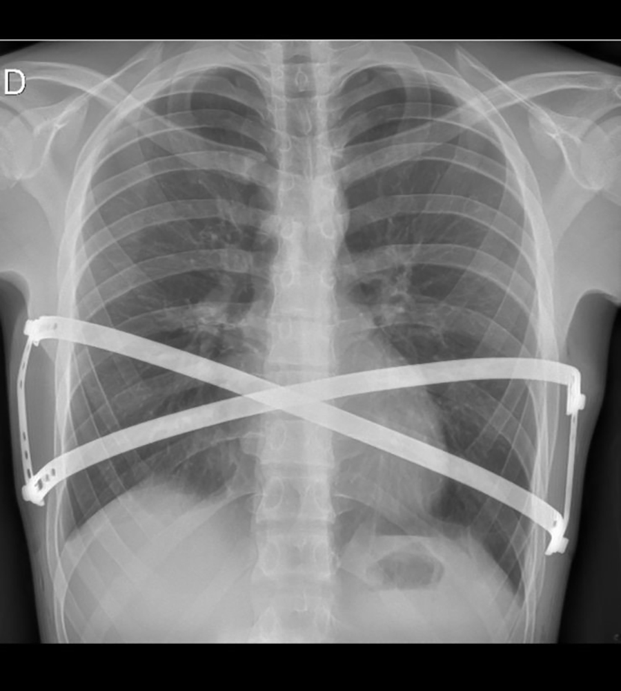 “O aço foi trocado por titânio e o serrilhado que existia para ajustar o fio de aço passou a ser desnecessário, o que deve facilitar a retirada da barra. Outra novidade incorporada aqui no Brasil é a chamada técnica sanduíche: em vez de uma única barra de metal empurrando o esterno para fora, utilizamos duas. Uma fica embaixo e a outra por cima desse osso e ambas estão ligadas entre si, eliminando a possibilidade de deslocamento”, conta Tedde.