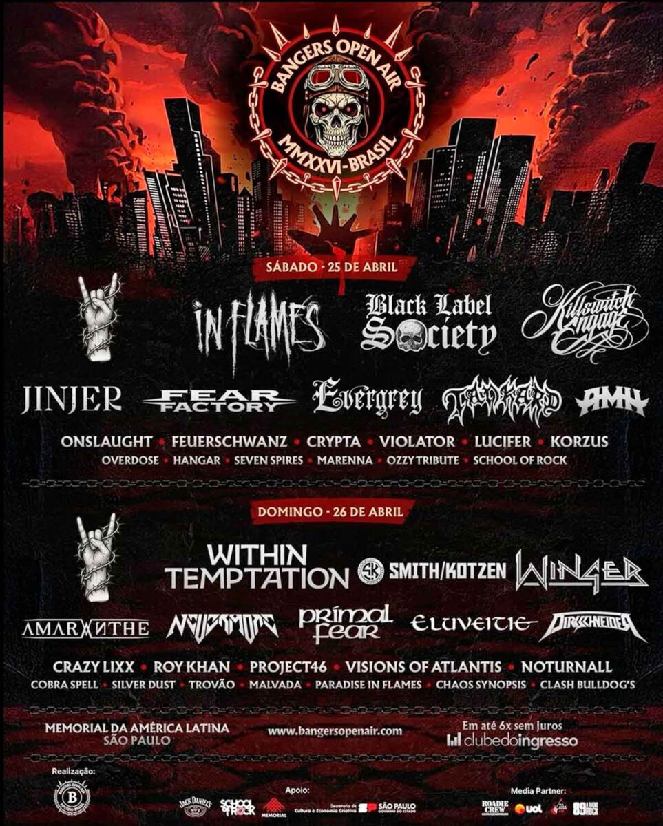 A organização do Bangers Open Air 2026 confirmou o Noturnall no line-up do festival, que acontece nos dias 25 e 26 de abril de 2026, no Memorial da América Latina, em São Paulo. Consolidado como o maior festival de heavy metal da América Latina, o evento reúne alguns dos principais nomes do metal nacional e internacional em dois dias de programação intensa.