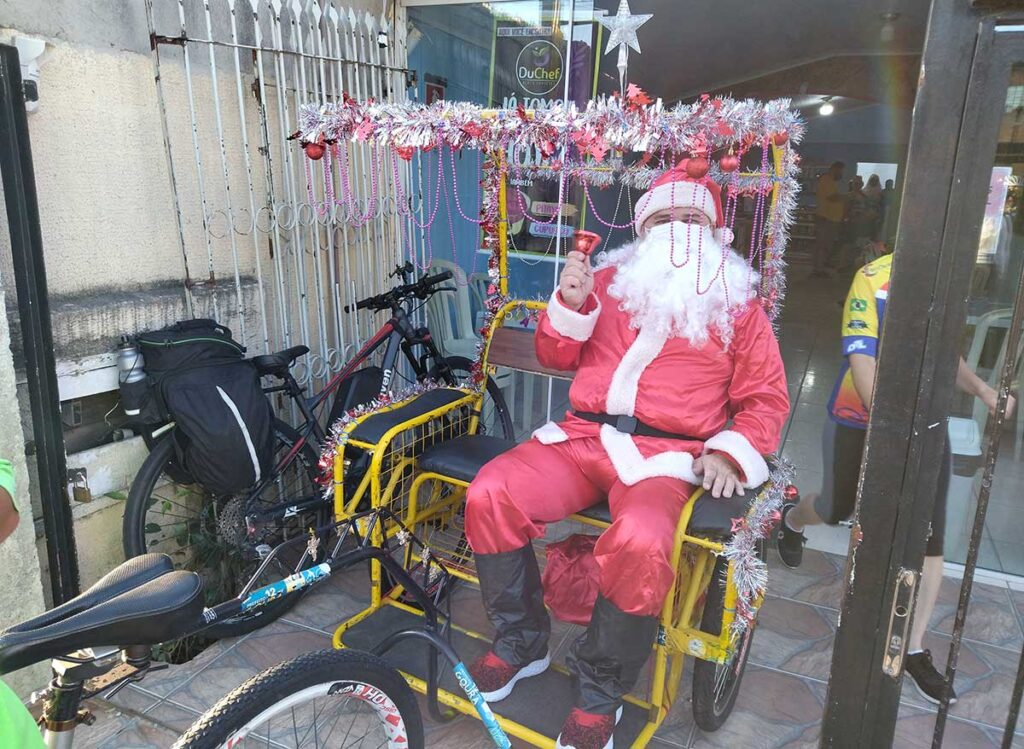 Papai Noel de bicicleta levando o presente da inclusão | CuritibaFun