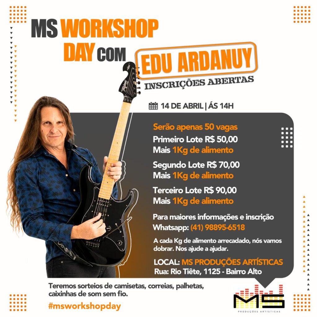 Edu Ardanuy é compositor e guitarrista. Considerado uma referência da guitarra brasileira, teve influência de bandas como Led Zeppelin e Van Halen, já tendo aberto shows para os grupos Kiss, AC/DC, Bon Jovi e Nirvana, com sua banda Dr. Sin. Com 25 anos de carreira, a MS considera Edu uma excelente pessoa para fazer parte do Workshop Day, já que vem incentivando a formação de novos músicos a muito tempo.