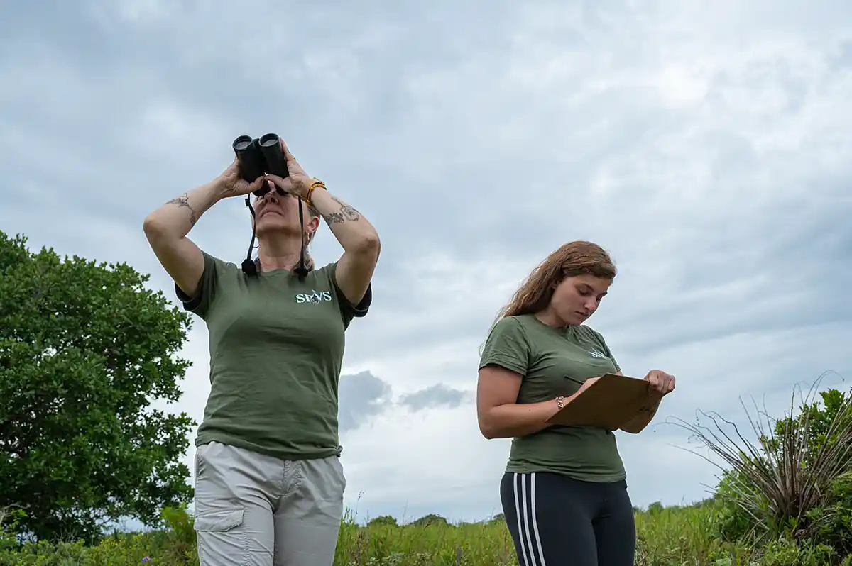 Elenise explica que, em 2024, foi utilizada a mesma metodologia dos anos anteriores para fazer a contagem dos papagaios. “Fizemos quatro contagens nos períodos da manhã e da tarde, por três dias consecutivos, para selecionar os melhores registros, quando as condições meteorológicas estavam adequadas: sem vento, sem neblina e, preferencialmente, com sol. Em dias ensolarados e sem vento, os deslocamentos dos papagaios tendem a ser maiores e a visibilidade para os contadores é melhor. O cenário para a contagem este ano foi adequado e, mesmo assim, percebemos os índices muito abaixo, principalmente no dormitório da Ilha do Pinheiro, em relação aos anos anteriores”, diz.
