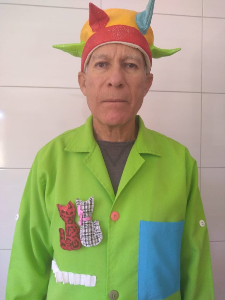 “Saí por uma porta do hospital e entrei pela outra, onde fui recebido pelo pessoal do voluntariado dos hospitais Cajuru e Marcelino Champagnat. Fiquei muito animado com o que conheci. Fiz o treinamento e comecei a frequentar o local duas vezes por semana. Um dia sou maqueiro, levo as pessoas para o centro cirúrgico e para fazer  exames, e no outro sou contador de histórias. Até ajudar na formação de novos voluntários já ajudei. Eu sinto que sou útil, e isso faz com que eu fique feliz e animado. Não consigo me ver o dia todo em casa deitado no sofá”, desabafa Pedro.