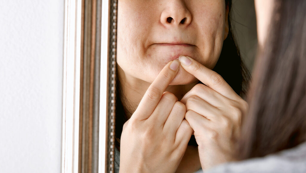 Espremer espinhas e cravos pode causar lesões cutâneas que servem como porta de entrada para bactérias. (Foto: Envato)