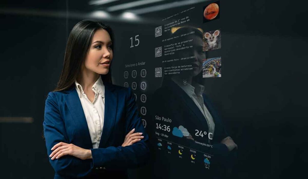 Entre as inovações que promovem uma experiência de conectividade com o passageiro está o AGILE Mirror. Trata-se de uma interface multimídia com várias opções de funcionalidades e entretenimento. Na tela refletida no espelho do elevador de alta resolução e sensível ao toque, além de escolher o andar que deseja ir, o passageiro pode ficar por dentro das últimas notícias, previsão do tempo, condições de trânsito e comunicados internos do condomínio. As configurações básicas da tela podem ser gerenciadas pelo edifício, como também o design, tudo de forma simples e conectada.