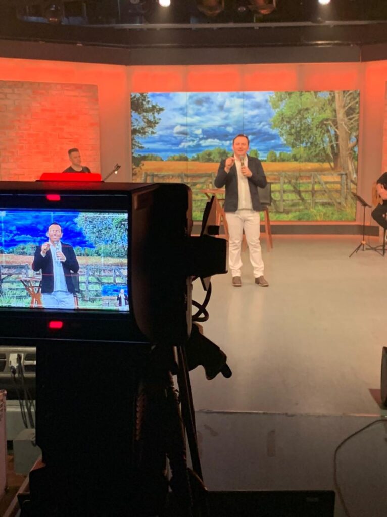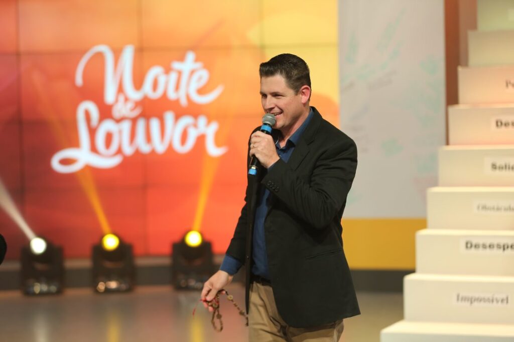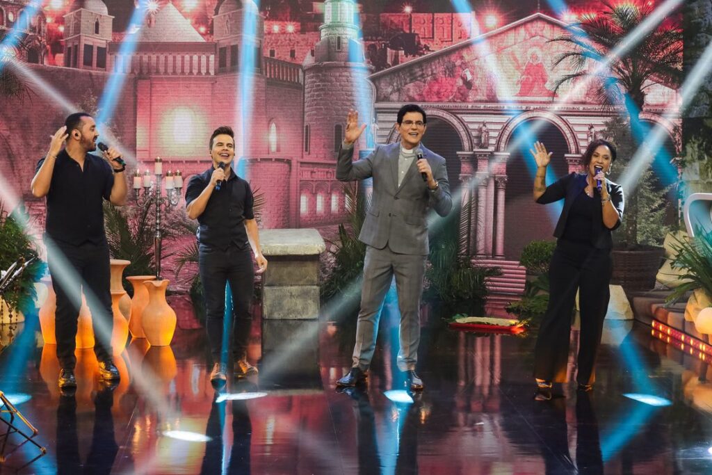 O programa “Noite de Louvor”, um dos maiores sucessos de audiência da TV Evangelizar. (Foto: Rafael de Cordova Martins/Divulgação)