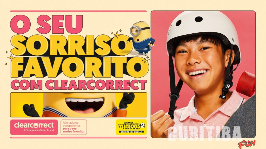No mês da esperada estreia do filme Minions 2: a Origem de Gru, marcada para o dia 30 de junho, os famosos bonequinhos amarelos chegam anunciando uma parceria com a ClearCorrect, marca de alinhadores transparentes para tratamentos ortodônticos. Com o slogan “Seu sorriso favorito”, que remete à primeira edição do filme que apresentou os personagens, a união da ClearCorrect com a Universal Pictures surge com o propósito de fidelizar também o público jovem.