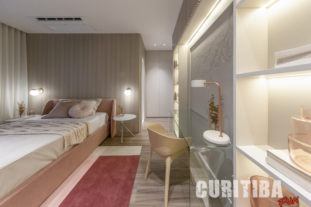 No decorado do empreendimento Prestige da A.Yoshii em Campinas, o quarto de menina ganhou tonalidades da Viva Magenta na cabeceira e na banqueta. Já no projeto Soul, em Maringá (PR), o toque vibrante de cor foi para a poltrona.